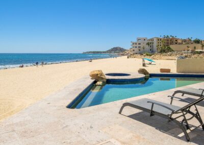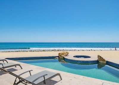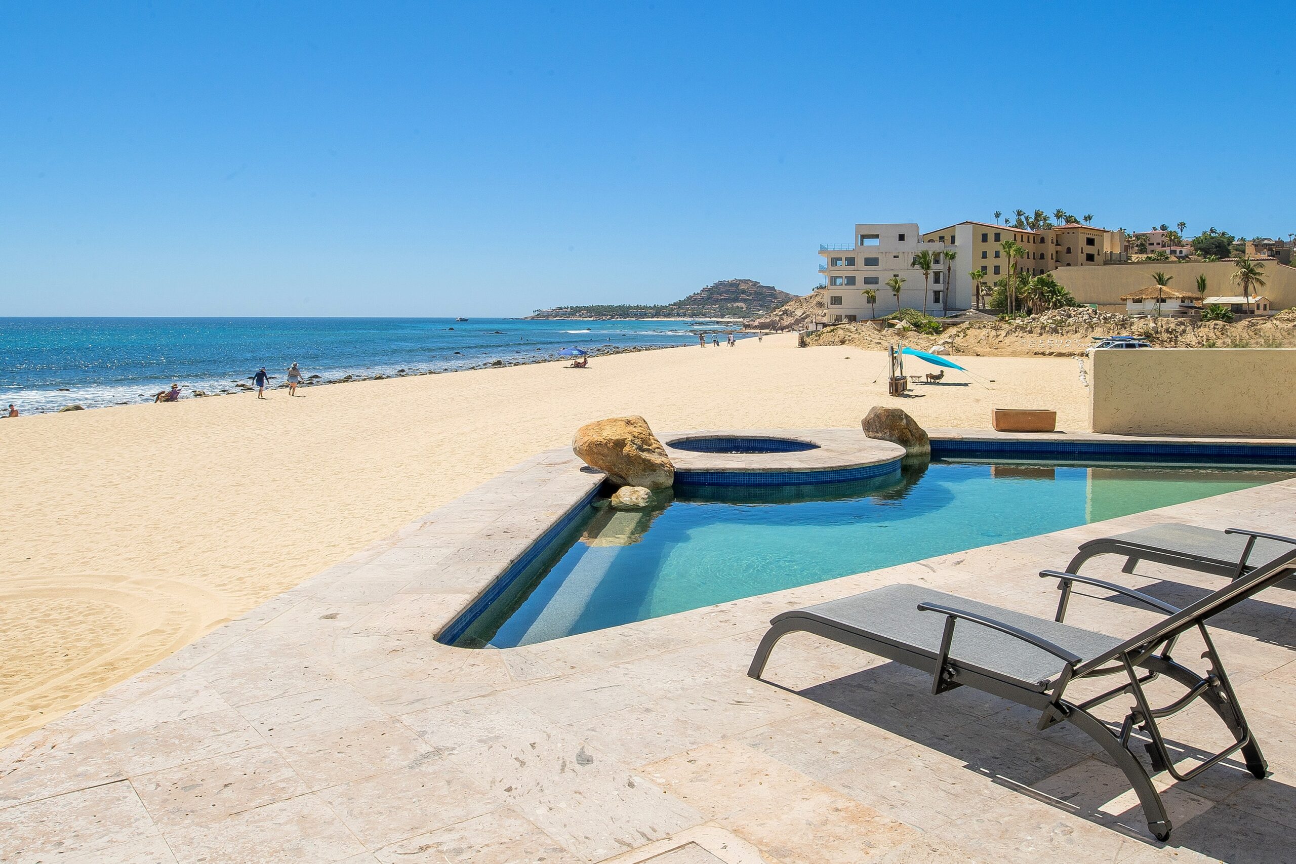 Enjoy breathtaking views of the Sea of Cortez from your private villa. Outside, you can take in the spectacular scenery from the private terrace just above the sand. Kick back on your lounge chair by the pool or take a dip in the jacuzzi as you watch the waves. Comfortable bedroom suites and a large ocean-view main living area welcome you to relax in style. Several wonderful beachfront dining spots are within walking distance nearby. The fun of charming historic San José del Cabo is just a short drive away for shopping and restaurants.